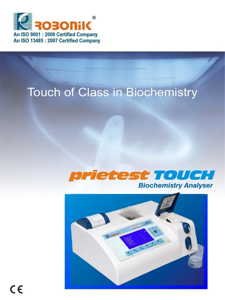 Robonik prietest biochemistry analyser by biomedical specialist power supply problem. Hamza toutou and 3 others like this. It is one of the players in electrolyte analyzer, electrical lab equipment, laboratory instruments, biochemistry analyzer, coagulation analyzers to name a few. Prietest touch measuring instruments pdf manual download. Biochemistry analyzer with built in peristaltic pump and flow cell touch activated graphic display makes it very convenient.